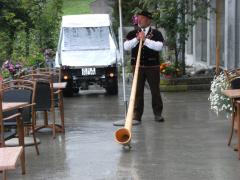 地元にお住いのアルペンホルン奏者の方が、B-POPのためにホテルアイガーに来てくれました。