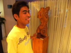 ホテルのロビーは、木彫りの彫刻がいっぱい。