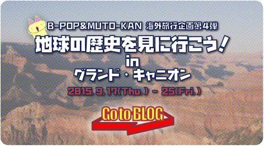 2015年9月17日(木)〜25日(金)、B-POP&MUTO-KAN海外旅行企画第4弾「地球の歴史を見に行こう! in グランドキャニオン」、開催! 詳しくは、特設ブログをご覧ください!